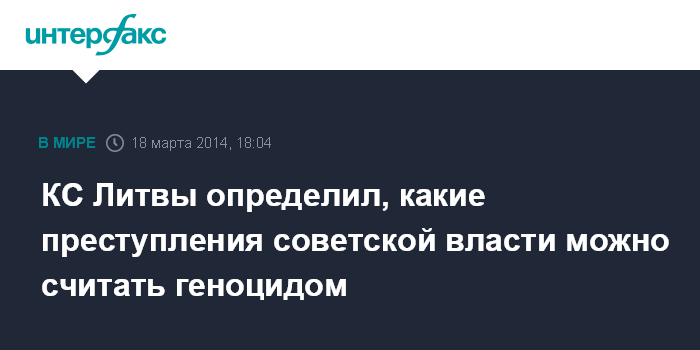 Москва. 18 марта. INTERFAX.RU - Конституционный суд (КС) Литвы во вторник дал разъяснения относительно того, какие действия советского режима правомерно приравнять к геноциду.