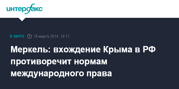 Москва. 18 марта. INTERFAX.RU - Канцлер ФРГ Ангела Меркель осудила решение России о включение в свой состав Крыма, передает во вторник BBC.
