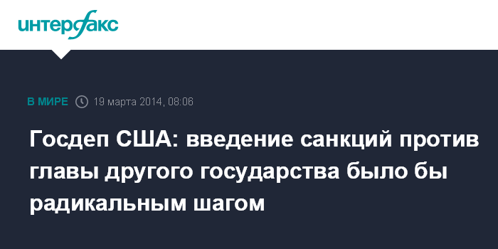 Москва. 19 марта. INTERFAX.RU - Принятие ограничительных мер в отношении лидера иностранного государства было бы чрезвычайным шагом для США, сообщила на пресс-конференции представитель госдепа Дженнифер Псаки.