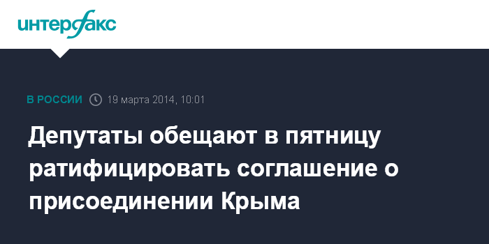 Депутаты обещают в пятницу ратифицировать соглашение о присоединении Крыма