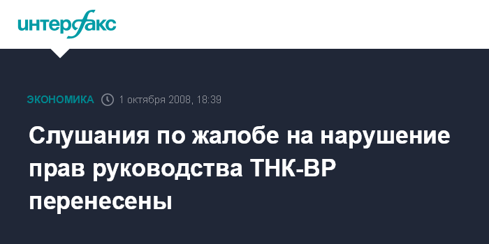 Слушания по жалобе на нарушение прав руководства ТНК-ВР перенесены