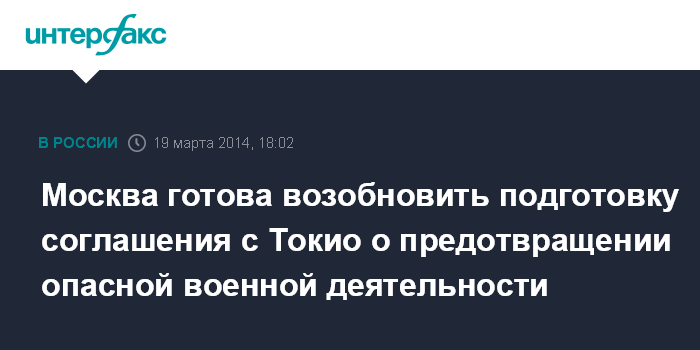 Москва готова возобновить подготовку соглашения с Токио о предотвращении опасной военной деятельности