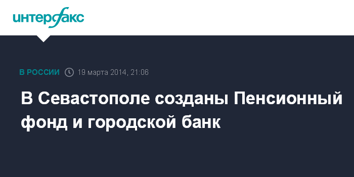 Москва. 19 марта. INTERFAX.RU - В Севастополе созданы Пенсионный фонд города и городской банк.