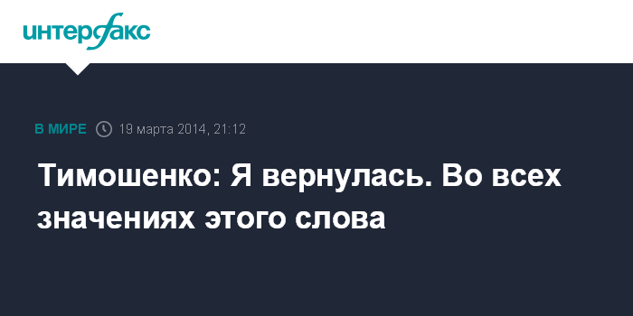 Тимошенко: Я вернулась. Во всех значениях этого слова