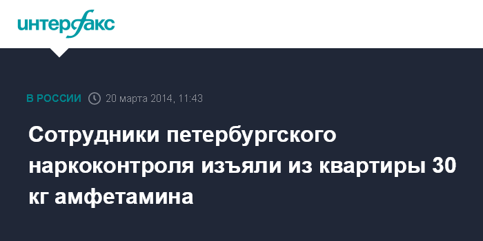 Москва. 20 марта. INTERFAX.RU - Сотрудники управления ФСКН по Петербургу и Ленинградской области изъяли из квартиры в Северной столице 30 кг амфетамина, который был готов к продаже.