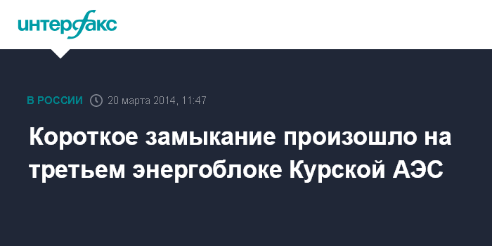 Москва. 20 марта. INTERFAX.RU - На Курской АЭС в ночь на четверг произошло короткое замыкание в электрооборудовании энергоблока № 3, сообщила пресс-служба атомной станции.