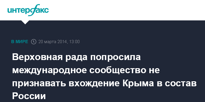 Верховная рада попросила международное сообщество не признавать вхождение Крыма в состав России