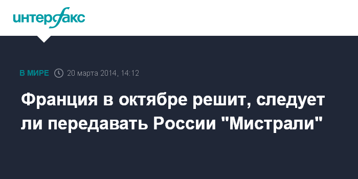 "Передача первого из этих кораблей намечена на октябрь. Следовательно, вопрос о возможной приостановке передачи станет актуальным именно в октябре", - сказал он в эфире телеканала BFMTV.