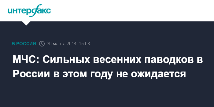 Москва. 20 марта. INTERFAX.RU - МЧС России не прогнозирует сильных весенних паводков, которые могли бы нанести серьезный ущерб населенным пунктам страны.