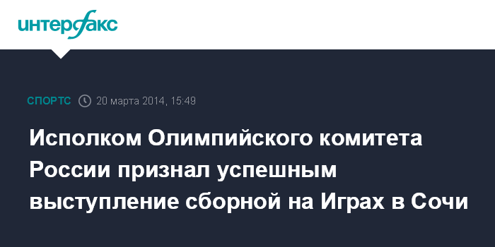Москва. 20 марта. INTERFAX.RU - Исполком Олимпийского комитета России (ОКР) на заседании в четверг признал успешными итоги выступления сборной России на Олимпийских играх в Сочи, заявил президент ОКР Александр Жуков.