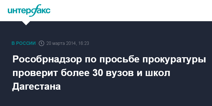 "Федеральная служба по надзору в сфере образования и науки в соответствии с поручением генеральной прокуратуры РФ в марте приступает к внеплановым проверкам в отношении образовательных организаций, осуществляющих образовательную деятельность на территории Республики Дагестан", - говорится в сообщении, размещенном на сайте Рособрнадзора.