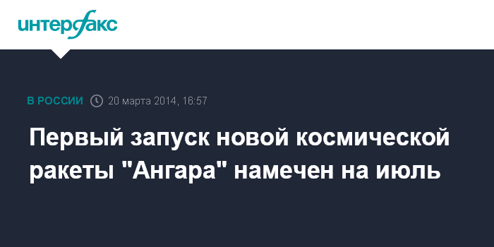 Первый запуск новой космической ракеты "Ангара" намечен на июль