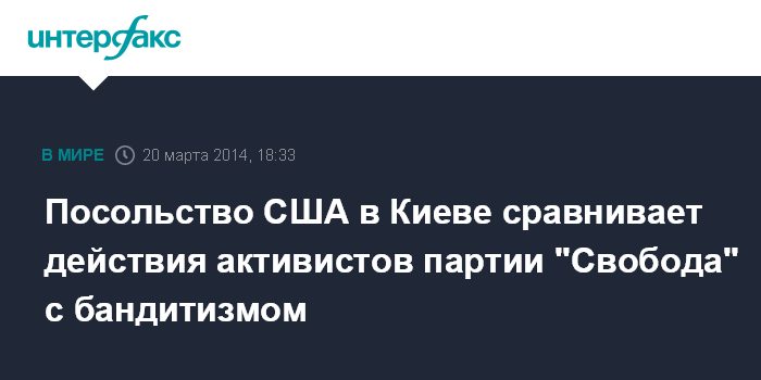 Москва. 20 марта. INTERFAX.RU - Посольство США в Киеве выступило с осуждением поведения членов украинской националистической партии "Свобода" в отношении и.о. главы Национальной телерадиокомпании Украины Александра Пантелеймонова.