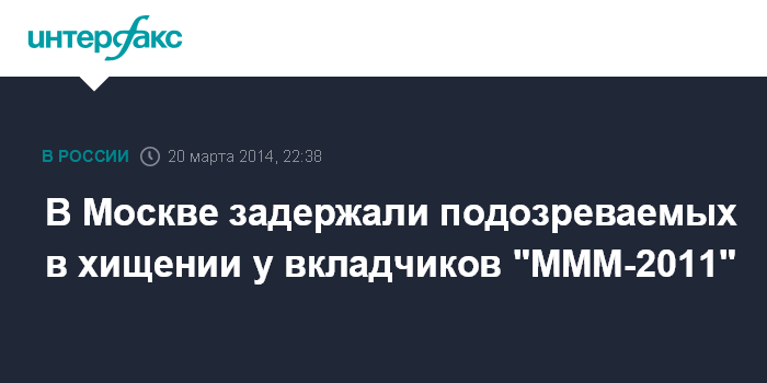 Москва. 20 марта. INTERFAX.RU - Члены этнической организованной группы, подозреваемые в хищении более 300 млн рублей у вкладчиков финансовой пирамиды "МММ-2011", арестованы в Москве, сообщает пресс-служба столичной полиции.