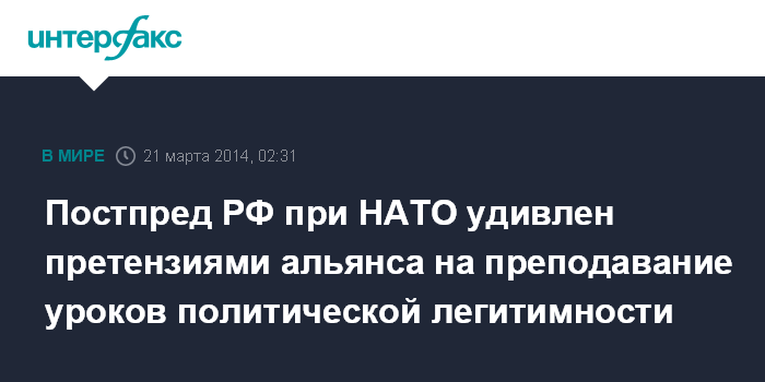 Постпред РФ при НАТО удивлен претензиями альянса на преподавание уроков политической легитимности