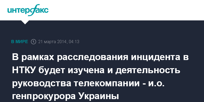 Киев. 21 марта. ИНТЕРФАКС-УКРАИНА - Генпрокуратура Украины всесторонне изучит обстоятельства инцидента с участием народных депутатов от партии "Свобода" в помещении НТКУ, в том числе и деятельность потерпевшего и.о. гендиректора НТКУ Александра Пантелеймонова, заявил и.о. генерального прокурора Украины Олег Махницкий.