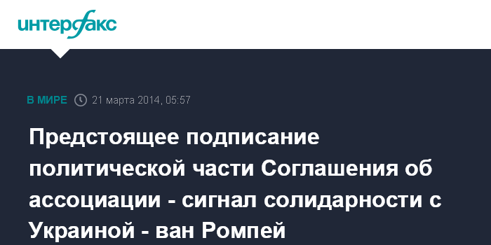 Предстоящее подписание политической части Соглашения об ассоциации - сигнал солидарности с Украиной - ван Ромпей