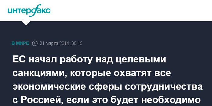 Брюссель. 21 марта. ИНТЕРФАКС-УКРАИНА - Президент Совета ЕС Херман ван Ромпей констатирует, что возможные целевые санкции в случае дальнейших действий России на Украине коснутся всех экономических сфер сотрудничества.