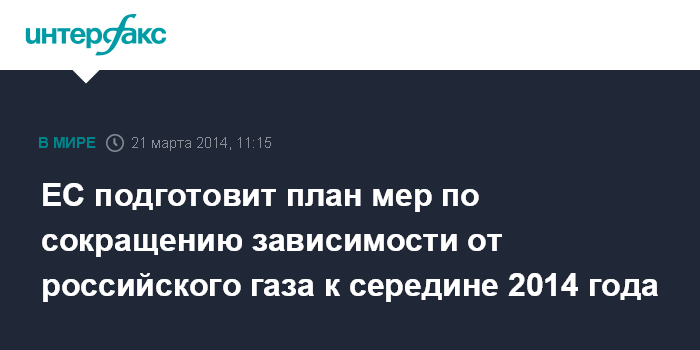 ЕС подготовит план мер по сокращению зависимости от российского газа к середине 2014 года