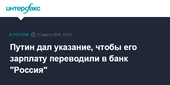 Путин дал указание, чтобы его зарплату переводили в банк "Россия"