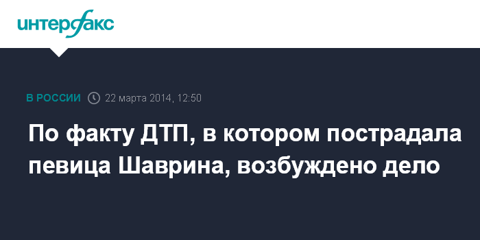 Москва. 22 марта. INTERFAX.RU - Полицейские возбудили уголовное дело по факту произошедшей в пятницу в "новой Москве" автоаварии с участием певицы, народной артистки России Екатерины Шавриной.