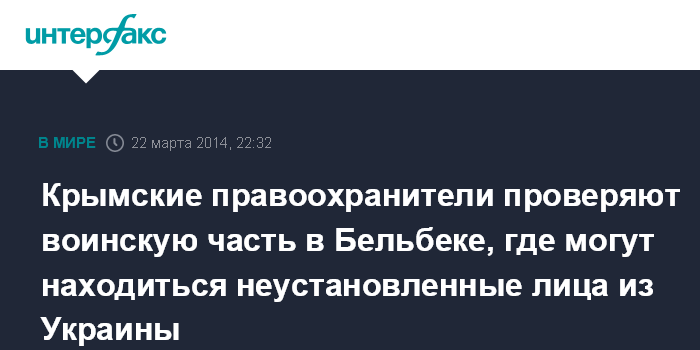 Как сообщили в правоохранительных органах Крыма, к ним поступила информация из нескольких источников о наличии на территории воинской части вооруженных сил Украины, дислоцированной в Бельбеке, группы неустановленных лиц, прибывших туда из разных частей Украины.