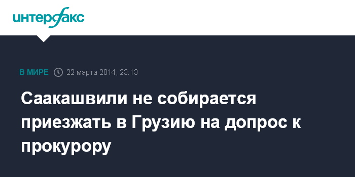 Москва. 22 марта. INTERFAX.RU - Экс-президент Грузии Михаил Саакашвили не намерен приезжать в Грузию на допрос в главную прокуратуру, так как, по его заявлению, ни в чем не виновен.