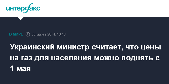Украинский министр считает, что цены на газ для населения можно поднять с 1 мая