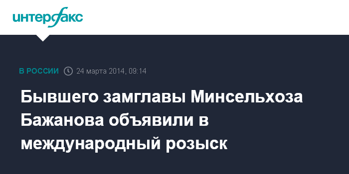 Москва. 24 марта. INTERFAX.RU - Бывший замглавы Минсельхоза Алексей Бажанов, которого в РФ обвиняют в мошенничестве, объявлен в международный розыск.