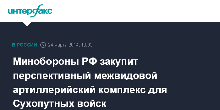 Минобороны РФ закупит перспективный межвидовой артиллерийский комплекс для Сухопутных войск