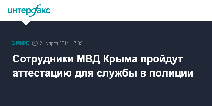 Москва. 24 марта. INTERFAX.RU - Зарплата сотрудников МВД в Крыму, прошедших после получения российского гражданства аттестацию для службы в полиции, вырастет более чем в два раза, сообщил глава МВД России Владимир Колокольцев.