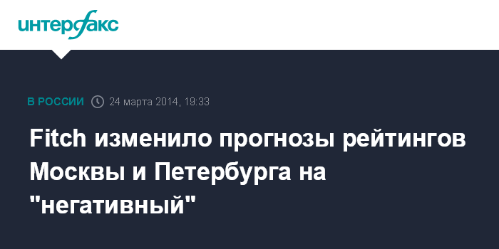 Лондон/Москва. 24 марта. INTERFAX.RU - Международное рейтинговое агентство Fitch Ratings изменило прогнозы рейтингов Москвы, Санкт-Петербурга, Татарстана, Тюменской области и Ханты-Мансийского автономного округа на "негативный" со "стабильного", сообщается в пресс-релизе агентства.