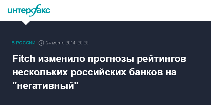 Лондон. 24 марта. INTERFAX.RU - Международное рейтинговое агентство Fitch Ratings изменило прогноз рейтингов дефолта эмитента (РДЭ) в иностранной и национальной валюте Внешэкономбанка, Россельхозбанка, Газпромбанка и Росагролизинга со "стабильного" на "негативный", сообщается в пресс-релизе агентства.