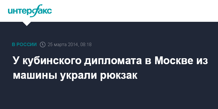 Москва. 25 марта. INTERFAX.RU - Воры-борсеточники забрались в автомобиль дипломата из Кубы в центре столицы и украли рюкзак, сообщил "Интерфаксу" источник в правоохранительных органах.