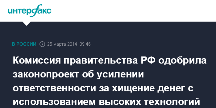 Комиссия правительства РФ одобрила законопроект об усилении ответственности за хищение денег с использованием высоких технологий