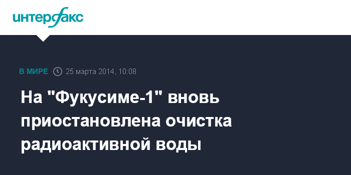 Москва. 25 марта. INTERFAX.RU - Компания-оператор японской аварийной АЭС "Фукусима-1" TEPCO снова прекратила работу системы очистки радиоактивной воды ALPS из-за технических неполадок, сообщает местный телеканал NHK.