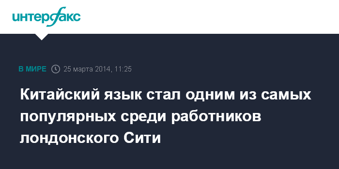 По данным исследования, которое провело кадровое агентство Astbury Marsden, мандаринский диалект китайского языка занял четвертое место по популярности в резюме работников Сити против восьмого места годом ранее. Кантонский диалект при этом вошел в первую десятку, заняв шестую позицию в рейтинге.