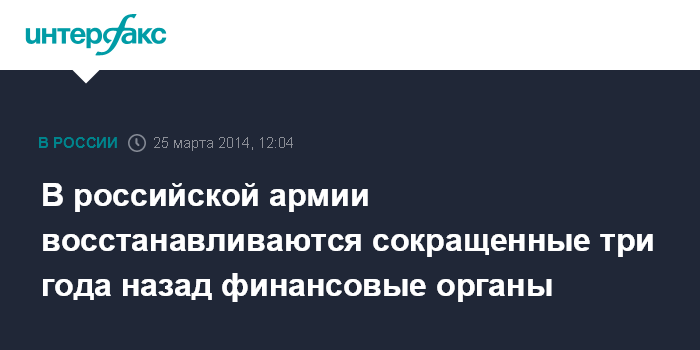 Москва. 25 марта. INTERFAX.RU - Финансовые органы российской армии, которые были реорганизованы в 2011 году, будут поэтапно восстановлены в прежнем виде, для этой цели планируется ввести в штаты профильных структур около 800 офицерских должностей, сообщил "Интерфаксу-АВН" во вторник источник, знакомый с ситуацией.