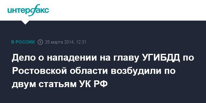 Москва. 25 марта. INTERFAX.RU - Следственные органы СКР по Ростовской области возбудили уголовное дело по факту избиения неизвестными начальника УГИБДД по региону Сергей Моргачева.