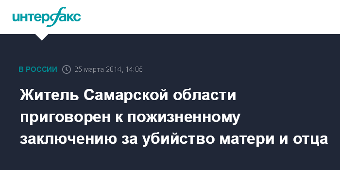 Москва. 25 марта. INTERFAX.RU - Самарский областной суд во вторник вынес приговор 24-летнему Наилю Замалееву, обвиненному в жестоком убийстве своих родителей, сообщила пресс-секретарь областного суда Татьяна Грачева.