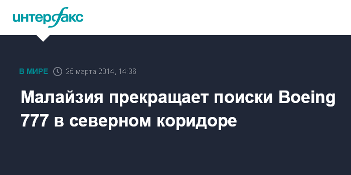 Малайзия прекращает поиски Boeing 777 в северном коридоре