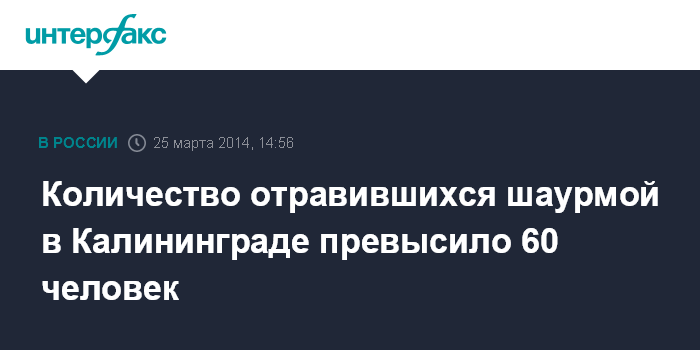 Ранее сообщалось о госпитализации в инфекционную больницу более 30 жителей Калининграда. У всех обратившихся медики диагностировали кишечную инфекцию. В ходе эпидемиологического расследования установлено, что все заболевшие употребляли шаверму, приобретенную в одном из торговых павильонов в центре Калининграда.