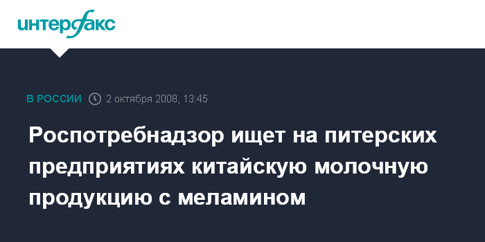 Санкт-Петербург. 2 октября. INTERFAX.RU - Петербургский Роспотребнадзор проверяет городские молочные предприятия на предмет выявления китайской продукции с содержанием меламина.