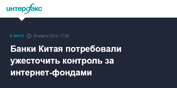 Пекин. 25 марта. INTERFAX.RU - Руководители крупнейших банков КНР просят регуляторов ограничить стремительную экспансию интернет-фондов, которые в последнее время стали объектом ожесточенной критики, сообщает агентство Bloomberg.