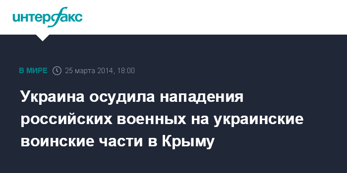 Киев. 25 марта. INTERFAX.RU - Министерство иностранных дел Украины выражает протест по поводу вооруженных нападений российских военнослужащих на украинские воинские части в Крыму.