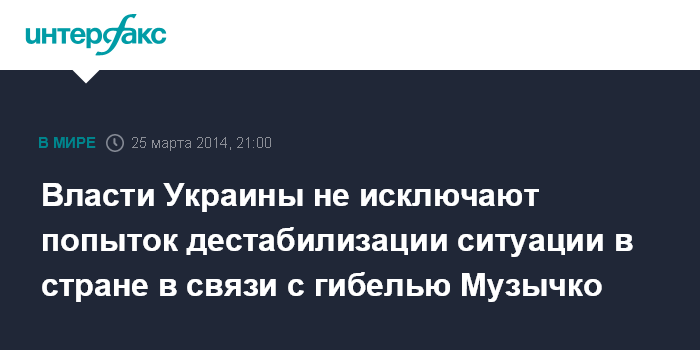 Власти Украины не исключают попыток дестабилизации ситуации в стране в связи с гибелью Музычко