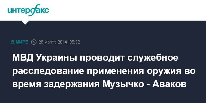 Москва. 26 марта. INTERFAX.RU - Министерство внутренних дел Украины готово допустить общественного наблюдателя к материалам расследования применения оружия правоохранителями при задержании Александра Музычко, известного как Сашко Билый, заявил глава МВД Арсен Аваков.