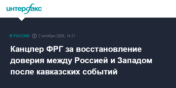 Канцлер ФРГ за восстановление доверия между Россией и Западом после кавказских событий