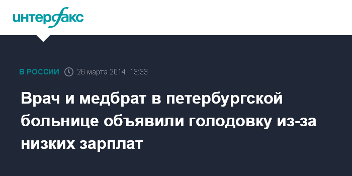 Врач и медбрат в петербургской больнице объявили голодовку из-за низких зарплат