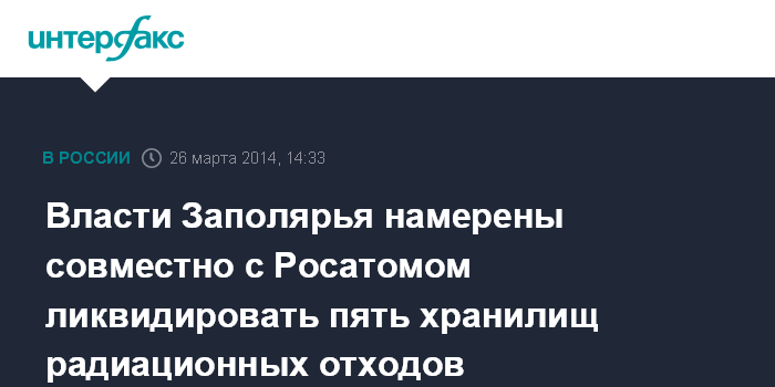 Власти Заполярья намерены совместно с Росатомом ликвидировать пять хранилищ радиационных отходов